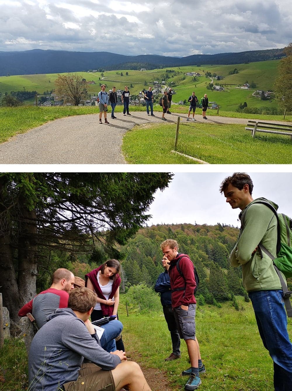 An verschiedenen Stationen mussten wir Rätsel lösen, um „Linus“ aus seiner verzweifelten Lage zu befreien. Für die Lösung der einzelnen Rätsel an den verschiedenen Stationen hatten wir insgesamt 210 Minuten Zeit. Die Rätsel führten uns über eine Strecke von 4,5 Kilometern, vorbei an Kühen, quer über den Schauinsland. Mit jedem gelösten Rätsel erhielten wir ein Stück von einer Karte, die uns zur nächsten Station führte. Circa auf der Hälfte der Strecke trafen sich beide Gruppen wieder an einer Station. Nachdem beide Gruppen separat voneinander das Rätsel erfolgreich lösten, trennten sich wieder die Wege der Gruppen.